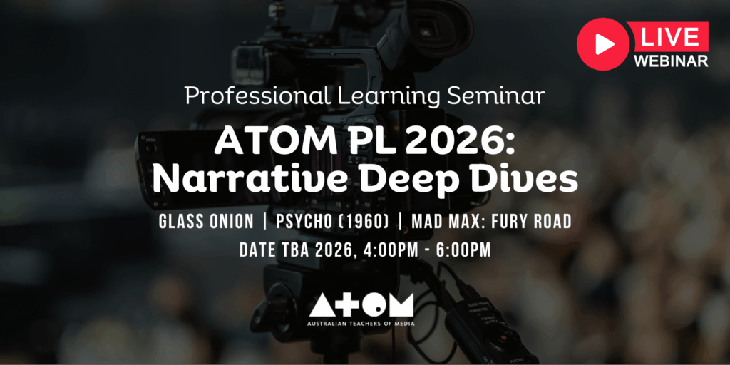 Experienced ATOM Vic Education Committee educators will take teachers through Units 1 & 3 according to the current Media Study Design to equip them with knowledge, resources and reassurance going forward.